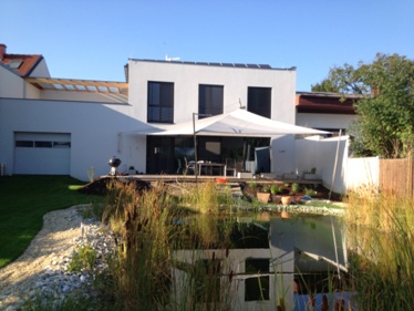 Hier wurde ein bestehendes Einfamilienhaus bis auf den Keller abgetragen, dieser wurde erweitert und darauf ein neues Passivhaus errichtet.