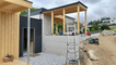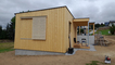 Das Gästehaus wurde mit Holzfaserplatten gedämmt und eine vertikale Fichtenholzfassade angebracht. Die Ein-deckung erfolgte mit ISO Panellen. Neben dem Gästehaus