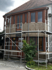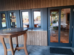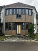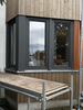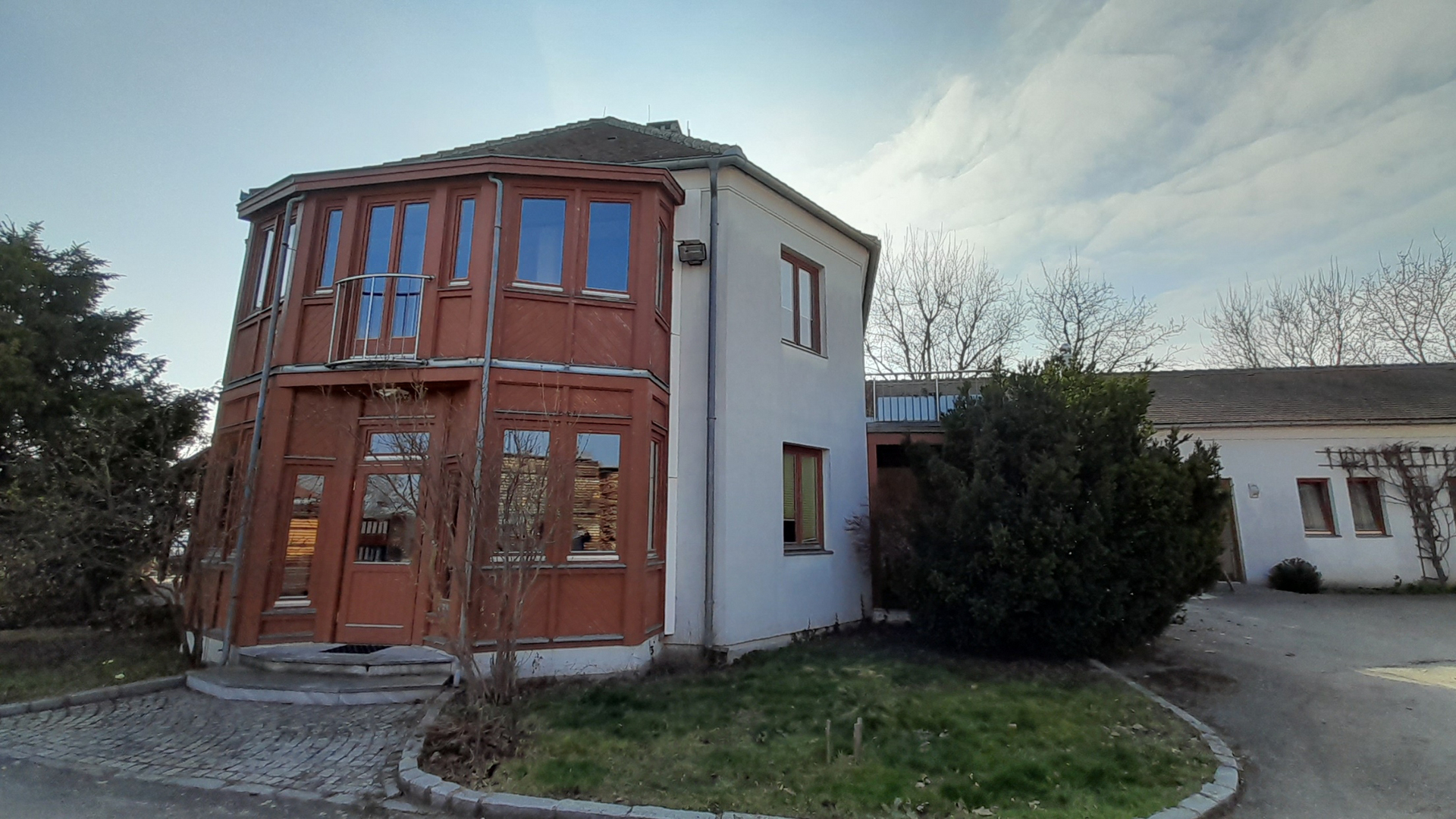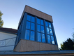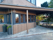 Das Pultdach wurde abgetragen und durch ein Flachdach mit Kreuzlagenholz ersetzt. Sämtliche Fenster wurden mit Aluprofilen beklipst und bei der Fassade im Eingangsbereich und beim Wintergarten wurden vertikale Lärchenbretter montiert.