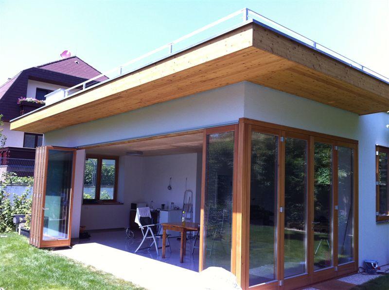 Besonderheit ist die Hebeschiebefalttür aus Eiche.