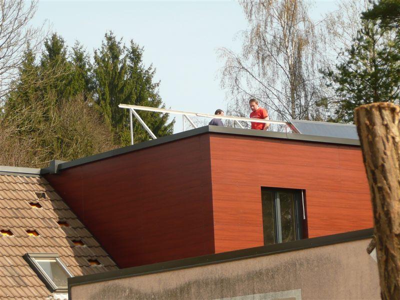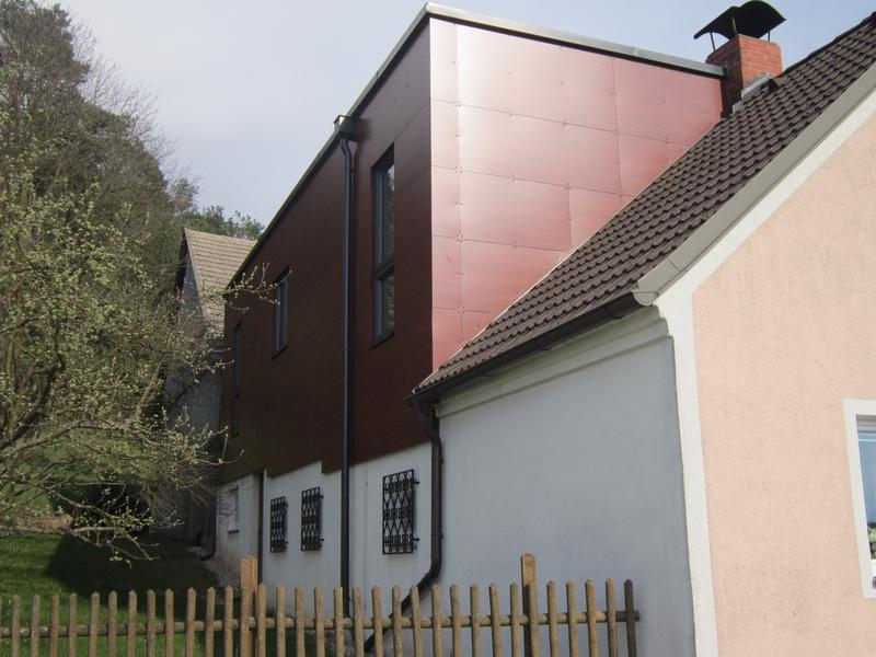 Durch die Aufstockung entstanden drei großzügige Räume und ein Badezimmer. Auf dem Flachdach ist eine extensive Dachbegrünung.